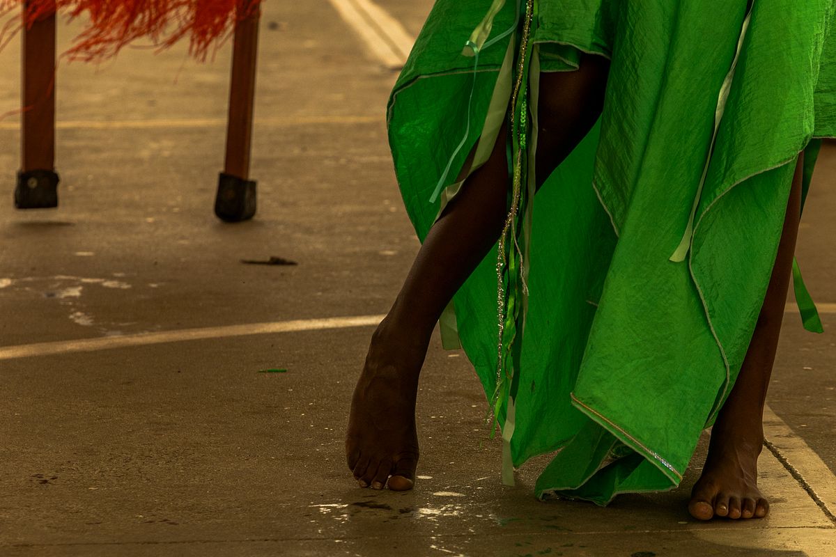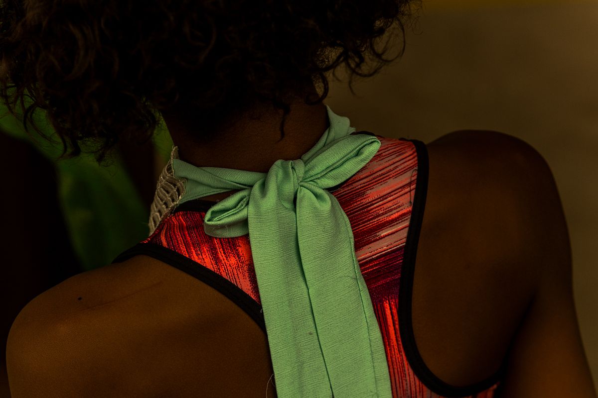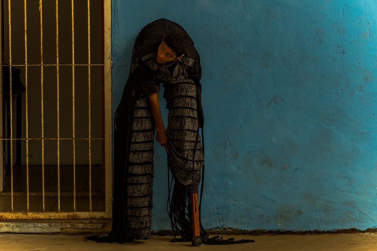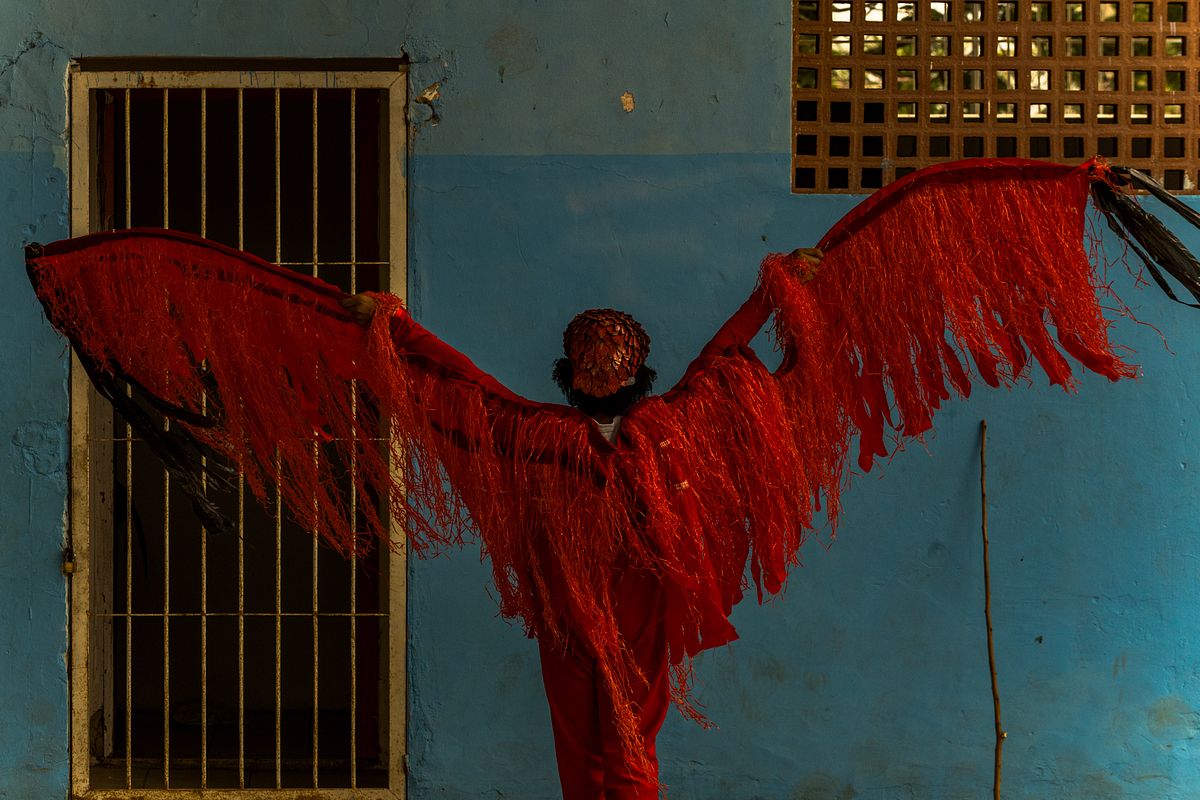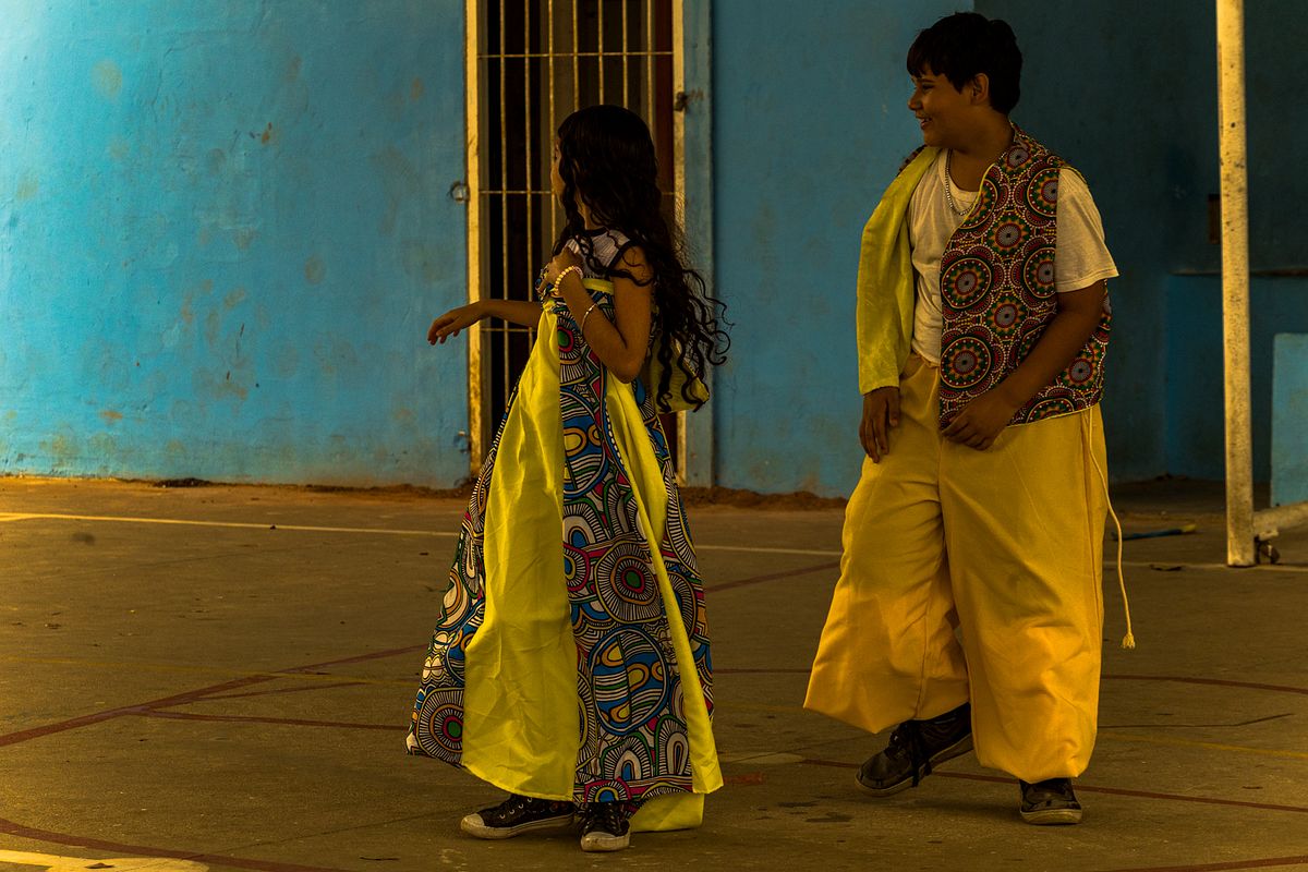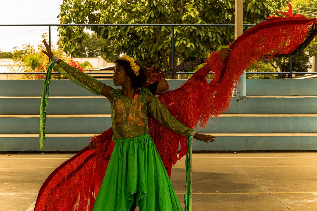 Os figurinos e adereços, são extensões do corpo, paisagens portáteis que transformam cada criança em personagem mítico. A textura dos tecidos, a aspereza das fibras, o brilho dos adornos, tudo se torna matéria-prima de um teatro visual. A fotografia, ao penetrar nesses fragmentos, ergue uma narrativa onde a cultura popular brasileira se refaz diante dos olhos.