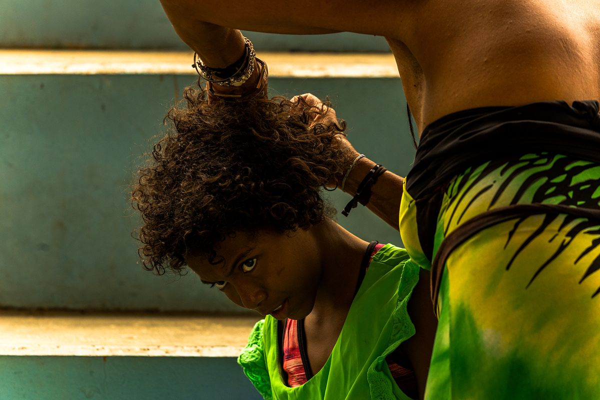 As lentes se aproximam dos detalhes, das tramas do pano, das mãos que costuram, dos olhos que aprendem a encenar o mundo. A fotografia se debruça sobre o instante com rigor geométrico, ora obedecendo à regras, ora rompendo-a para privilegiar o improviso da cena. Há um balanço entre simetria e desordem, entre o movimento das pernas erguidas em perna-de-pau e a serenidade dos intervalos silenciosos.